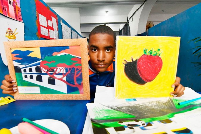 “Na minha primeira aula de artes aqui, a professora pediu uma atividade e gostou muito do meu desenho. Foi aí que percebi que queria continuar e podia melhorar. A arte me ajuda porque sempre gostei muito. Sou tímido, mas, com o desenho, consigo me expressar melhor e ficar mais tranquilo”, contou.