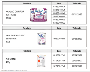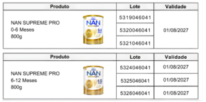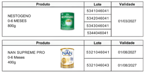 Para os consumidores que utilizam as fórmulas infantis citadas, a orientação é verificar o número do lote impresso no rótulo.