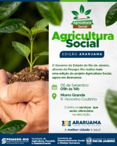 Araruama será palco, no próximo sábado (6), da 7ª edição do Programa Agricultura Social, uma iniciativa do Governo do Estado do Rio de Janeiro, que une agricultura familiar, cidadania e bem-estar. O evento acontece em Morro Grande, das 9h às 14h, com entrada gratuita.