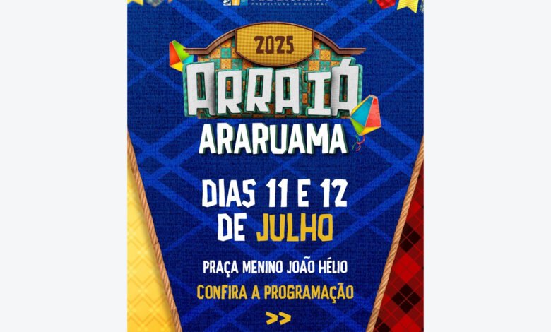 A Prefeitura informa que o Arraiá Araruama foi reagendado para os dias 11 e 12 de julho, na Praça Menino João Hélio, no Centro.