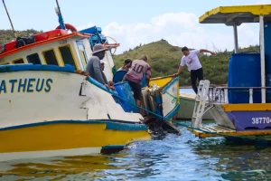 A embarcação “San Matheus”, que naufragou no domingo (19) após uma colisão com outro barco, na Boca da Barra, do Canal do Itajuru, já foi retirada no começo da tarde dessa segunda (20). A operação começou logo cedo, com mergulhadores e dois barcos de apoio.