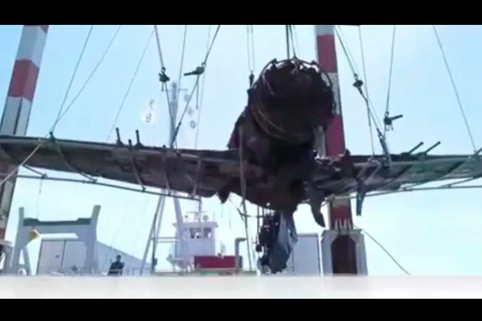 As asas do caça estavam claramente reconhecíveis, apesar de terem passado tanto tempo em água salgada.