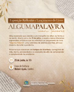 A Casa de Cultura Walmir Ayala, no Centro de Saquarema, será palco de uma noite especial de arte e literatura com a abertura da exposição “Reflexões” e o lançamento do livro Alguma Palavra, do autor Ivan Tavares. O evento acontece nesta quarta-feira, dia 25 de junho, a partir das 18h, com entrada gratuita.