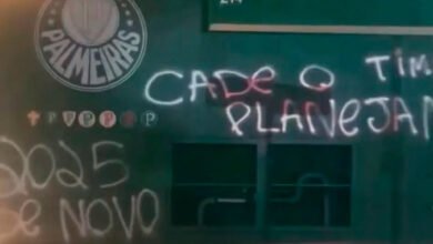 Muros da sede do Palmeiras são pichados após goleada para o Novorizontino: ‘2025 de novo’