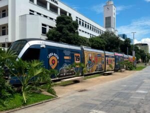 O VLT carioca circula com a propaganda do CREA AQUI: plataforma de ideias, parcerias e tecnologia