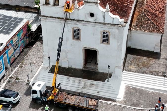 Durante a inspeção, com apoio de grua e imagens de drone, foram identificadas telhas soltas, elementos de sustentação comprometidos e ausência de laje estrutural adequada, oferecendo risco de queda e acidentes. Como medida preventiva, a Defesa Civil interditou o perímetro da igreja e comunicou o Instituto do Patrimônio Histórico e Artístico Nacional (Iphan), responsável pela autorização de obras em imóveis tombados.