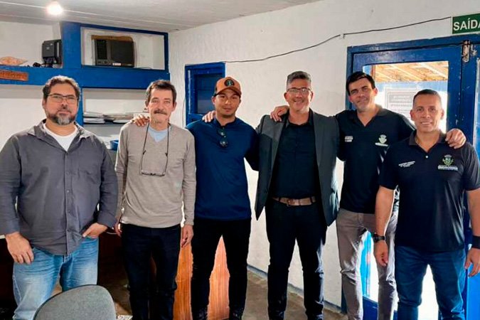 Os secretários de Esportes e Lazer, Ricardo Ramos, e de Turismo, Rodolfo Jotha; o biólogo, Flávio Antônio; o diretor do Grupo Porto Sub, Alaor Aloan Moreira dos Santos e o vice-diretor, Luis Felippe Mendonça de Souza, também participaram da reunião de alinhamento.