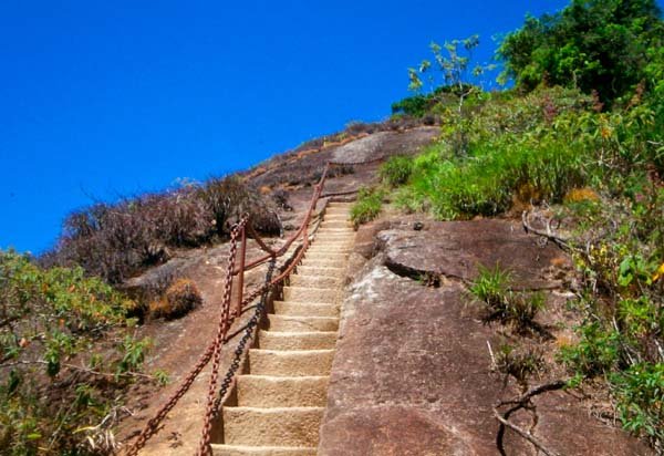 A escadaria, que completa 105 anos em setembro, hoje é parte fundamental do trajeto até o cume. Com correntes laterais de proteção e degraus de pedra perfeitamente encaixados na montanha, ela permite que visitantes sem preparo físico ou experiência em trilhas mais técnicas possam alcançar o topo com mais segurança. A trilha completa tem cerca de 2,8 quilômetros e é considerada de dificuldade moderada a difícil, com aclives acentuados principalmente no trecho final, justamente onde está o conjunto de degraus esculpidos em 1920.