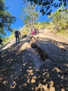 De imediato, o GTUR iniciou a evacuação dos visitantes da trilha para garantir a segurança de todos. Após cerca de uma hora de subida até a região conhecida como “Carrasqueira” ou “Cabeça do Elefante”, próximo ao topo do morro, a equipe conseguiu orientar e retirar com segurança os trilheiros. Três servidores do INEA realizaram varredura para confirmar que não havia mais pessoas na área afetada.