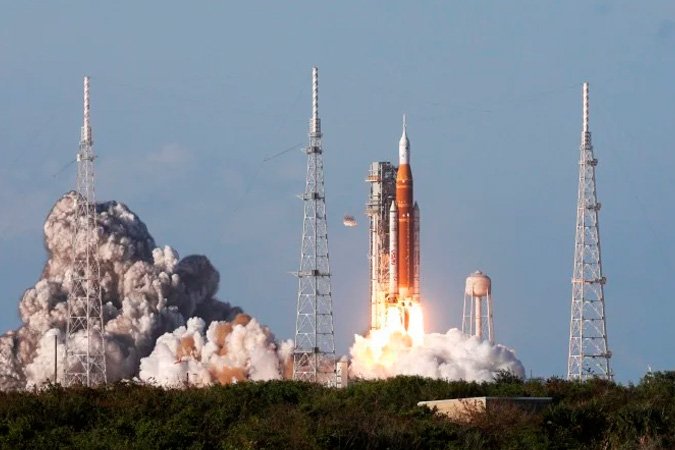 Vinte e cinco minutos depois da partida, a espaçonave alcançou a órbita da Terra. Com velocidades variando até um pico de 40 mil quilômetros por hora, Orion deverá sobrevoar a Lua no sexto dia da missão. Com a ajuda da gravidade do próprio satélite, a nave formará um oito gigante na órbita lunar, um traçado que incluirá o lado oculto, jamais avistado por tripulantes, mas tão cultuado pela cultura popular em filmes, quadrinhos e nos acordes de The Dark Side of The Moon, da banda Pink Floyd (1973).