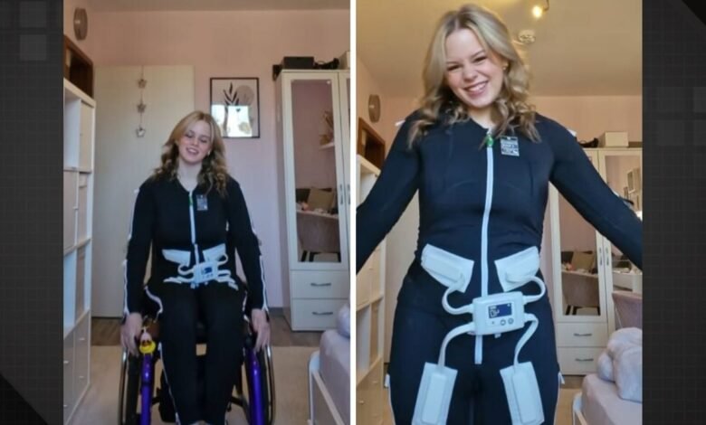 A conquista foi possível graças ao uso do Exopulse Mollii Suit, um traje tecnológico desenvolvido para auxiliar pessoas com dificuldades motoras. Emelie adquiriu o traje por meio de uma vaquinha online, que arrecadou os 9 mil euros necessários — cerca de R$ 58 mil — com a ajuda de seguidores.