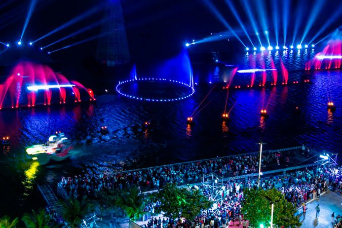 O secretário de Turismo, Léo Anderson, informou que o espetáculo alcança 200 metros de comprimento, preenchendo a margem da lagoa com efeitos luminosos e movimentos coreografados das águas.