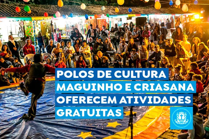O Polo de Cultura Maguinho oferece: Ginástica para a Terceira Idade (segunda, terça e quinta-feira, às 9h); Treinamento Funcional (segunda, terça e quinta-feira, às 15h) e Violão e Percussão ( terça-feira, à tarde e à noite e quarta-feira, de manhã). Já no CriaSana, acontecem aulas de Ginástica Localizada (quinta e sexta-feira, de manhã, às 9h30, e à tarde, às 16h, além de avaliação física).