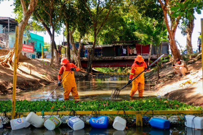 Um dos marcos da gestão neste ano foi o fortalecimento da proteção hídrica. Com a instalação da 11ª e da 12ª ecobarreiras, Manaus passou a contar com uma rede estratégica de 12 estruturas de contenção que impedem o avanço de plásticos, pneus e outros poluentes em direção ao rio Negro.
