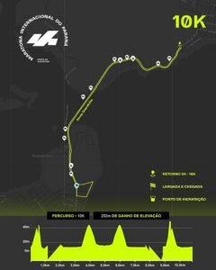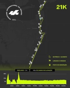 As demais distâncias seguem a mesma lógica de percurso. As provas de 5 km e 21 km começam com subida forte, seguem em descida, cruzam a ponte e retornam, exigindo atenção desde a largada. Já os 10 km distribuem duas subidas e duas descidas ao longo da ida e da volta, configurando uma prova de exigência física intermediária.