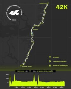 A Ponte de Guaratuba é o ponto mais marcante do traçado e influencia diretamente a dinâmica das provas. Na maratona completa, os 42 km, o percurso concentra duas subidas fortes antes e depois da travessia, responsáveis por um ganho total de elevação de 232 metros. Esses trechos exigem leitura de prova e controle de ritmo, mas são compensados por extensos segmentos planos, especialmente pelas ruas e orlas de Matinhos e Guaratuba, que favorecem constância e manutenção de velocidade.