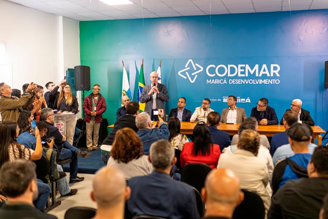 A Prefeitura de Maricá, por meio da Companhia de Desenvolvimento de Maricá (Codemar), formalizou na manhã desta segunda-feira (11/08) a assinatura do termo de cooperação técnica com o Departamento Nacional de Infraestrutura de Transportes (DNIT), marcando o início do projeto “Vermelhinho das Águas” – o primeiro sistema municipal aquaviário gratuito de passageiros e cargas da cidade. A cerimônia ocorreu na sede da Codemar, onde também foi apresentada a proposta técnica que prevê a implantação de estações aquaviárias em diversos bairros.