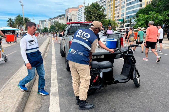 A Operação Verão, iniciada pela Prefeitura do Rio no dia 05 de setembro de 2025, conta com mais de 1.000 agentes. As ações são auxiliadas por drones e agentes da Seop atuam no Centro de Operações e Resiliência (COR-Rio) para orientar agentes que atuam nas ruas. Em único ponto de Copacabana, os servidores municipais apreenderam cinco motos elétricas que estavam sendo alugadas sem qualquer tipo de autorização na Avenida Atlântica. O responsável cobrava R$ 70 por um passeio de 30 minutos.