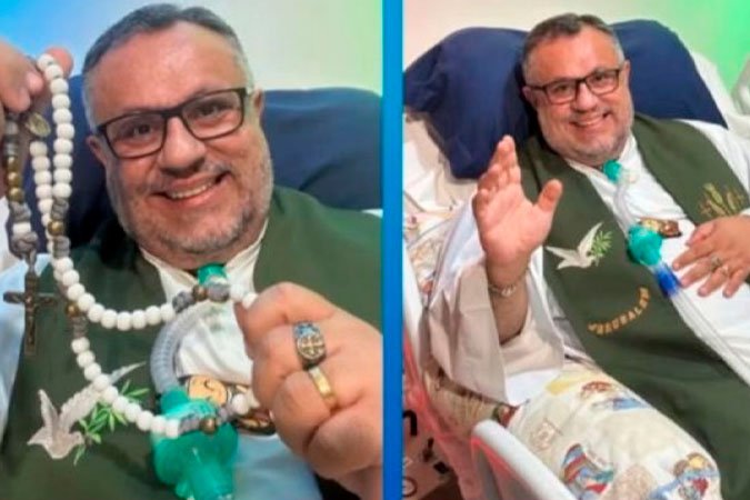Hoje o dia foi mais difícil: minha respiração ficou muito ruim. Nem com os aparelhos eu conseguia respirar direito. E não estamos conseguindo controlar a dor. A doença está avançando, mas minha fé está avançando muito mais”, publicou o padre em suas redes sociais na noite desta quinta-feira (4/9). O religioso está internado desde a última segunda-feira (1°/9) e tem feito uso de morfina para aliviar a dor. Em maio, ele já havia ficado internado por 16 dias devido a complicações da doença rara.