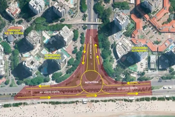 Criação de rotatória no encontro das avenidas Ayrton Senna e Lúcio Costa