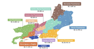 No Noroeste Fluminense, aproximadamente R$ 1,1 bilhão será destinado a diversas obras, com destaque para projetos de universalização dos serviços de abastecimento de água e esgotamento sanitário, conduzidos pela CEDAE nos municípios de Itaperuna, Laje do Muriaé e Varre-Sai, e pela concessionária do município Santo Antônio de Pádua. Também se destacam as iniciativas de reforma e ampliação de unidades hospitalares em diferentes municípios da região. No Centro Norte Fluminense, cerca de R$ 890 milhões serão investidos em projetos voltados às áreas de 3 A divisão regional do estado do Rio de Janeiro está disponível no Anexo 1.