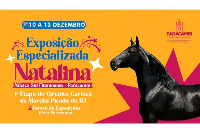 De 10 a 13 de dezembro, Paracambi será a sede da Exposição Especializada Nataliana de Mangalarga Marchador, evento que promete movimentar o município e atrair criadores e admiradores da raça. A programação será realizada no Centro de Exposições de Paracambi (Polo) e contará com a presença de animais de alto padrão, vindos de diversas regiões.