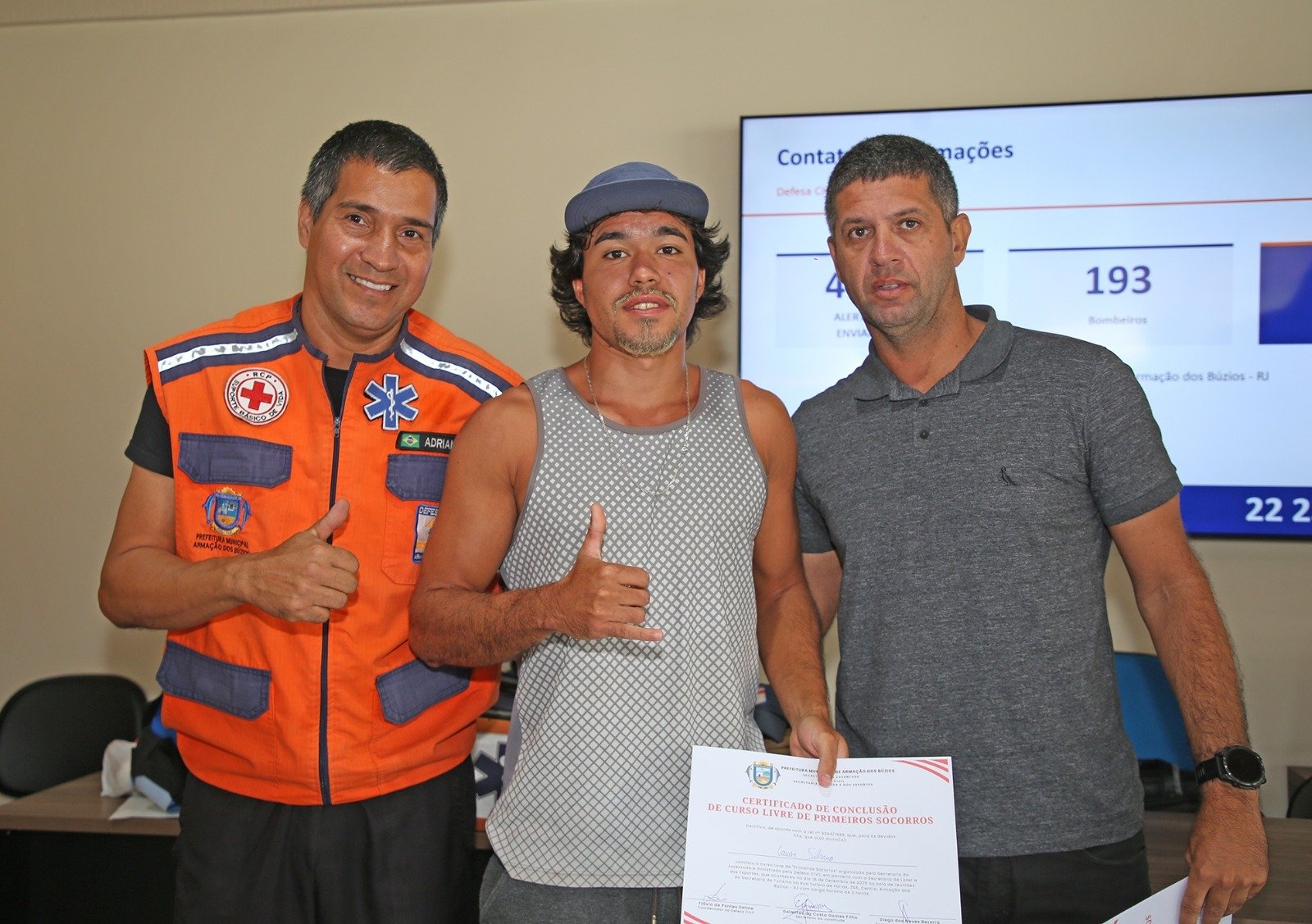 4aaCinquenta moradores de Armação dos Búzios participaram, nesta quinta-feira (18), do Curso de Primeiros Socorros realizado pela Prefeitura, por meio da Secretaria da Juventude, em parceria com a Secretaria do Lazer e do Esporte e a Coordenadoria de Defesa Civil da Secretaria de Segurança Pública. Ao final da capacitação, todos os participantes receberam certificado de formação.