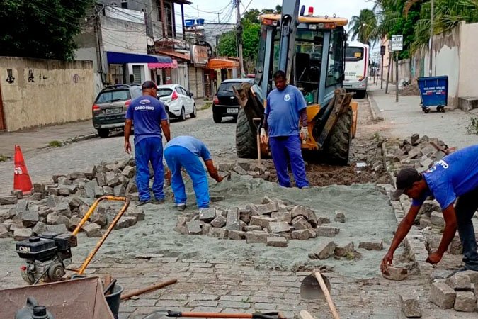 A ação contemplou o nivelamento do trecho afetado e a reposição de paralelos, após o registro de cedimento do solo que ocasionou o afundamento do pavimento. O problema comprometia a trafegabilidade e oferecia riscos à segurança de pedestres e condutores.