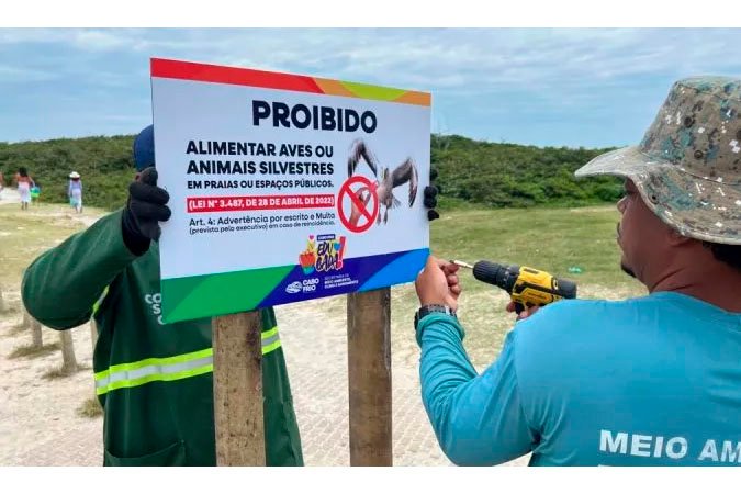 “É fundamental que a população e os visitantes colaborem e entendam os riscos dessa prática, tanto para as aves quanto para o equilíbrio ambiental. A intenção é que as famílias, turistas e prestadores de serviço em geral consigam visualizar claramente a proibição de alimentar esses animais, entendam as razões e conheçam as leis que fundamentam isso. Vamos instalar sinalização em todas as praias no município, começando pela orla da Praia do Forte, Palmeiras, Peró, Conchas e também em Tamoios, nas entradas das praias, para que o alerta fique visível nos acessos”, destacou o secretário de Meio Ambiente, Clima e Saneamento, Jailton Nogueira.
