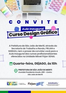 A Prefeitura de São João de Meriti, por meio da Secretaria Municipal de Trabalho e Renda, realizará na próxima quarta-feira, dia 06 de agosto, a aula inaugural do curso de Design Gráfico. A iniciativa é fruto de uma importante parceria com a Firjan SENAI e o SIGRARJ (Sindicato das Indústrias Gráficas do Rio de Janeiro), que visa promover a qualificação profissional e ampliar as oportunidades de inserção no mercado de trabalho.