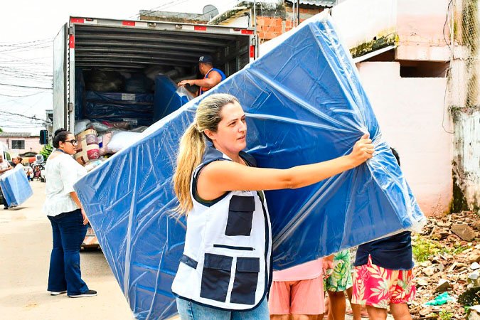Durante as ações, foram distribuídos colchões, travesseiros, cobertores, kits de limpeza e cestas básicas, com o objetivo de minimizar os prejuízos causados pelas chuvas e garantir atendimento imediato às famílias em situação de vulnerabilidade.