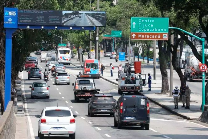 Prefeitura do Rio inaugurou, nesta quarta-feira (18), o primeiro semipórtico inteligente da Central de Inteligência, Vigilância e Tecnologia em Apoio à Segurança Pública (CIVITAS Rio). O equipamento, instalado na Avenida Francisco Bicalho, na saída da ponte em direção ao Centro, marca a implantação da primeira Fronteira Digital da cidade. Mais 16 ainda serão instaladas até o fim deste ano — com 56 previstas para todas as entradas, saídas e pontos de grande circulação de veículos e pessoas do Rio até 2028.
