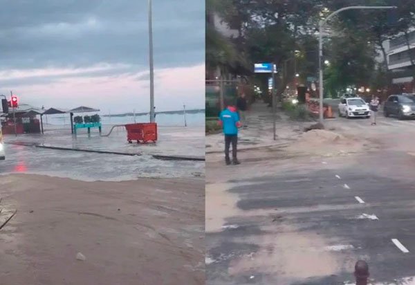 Uma ressaca marítima provocou acúmulo de areia e o bloqueio de avenidas na orla do Leblon, no Rio de Janeiro, nesta terça-feira (29/7). Segundo alerta da Marinha do Brasil, o fenômeno pode durar até 21h de quinta-feira (31/7) com ondas entre 2,5 e 3,5 metros de altura. A Defesa Civil do município alertou ainda para a incidência de ventos fortes.