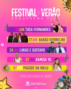 Após a divulgação da programação esportiva, a Prefeitura preparou uma programação musical com grandes shows que prometem animar moradores e turistas na estação mais quente do ano!