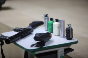 CURSO – Na capacitação, os agentes receberam conteúdo programático sobre o conceito não letal, classificação das tecnologias não letais, legislação nacional e internacional de uso destes equipamentos (lançadores, espargidores de pimenta, granadas lacrimogênea e de pimenta, granadas explosivas, munições táticas e outros), o uso proporcional e seletivo da força, os agentes químicos e suas definições, os efeitos no organismo, como é feita a descontaminação e os primeiros socorros, manuseio destes equipamentos, cuidados, transporte, como é feito o emprego tático, as práticas em ambiente de controle de multidões e outros. Também foram estudadas as características, funcionamento e contraindicações do uso do dispositivo elétrico incapacitante (spark), disparos individuais e oficinas de vivenciamento.