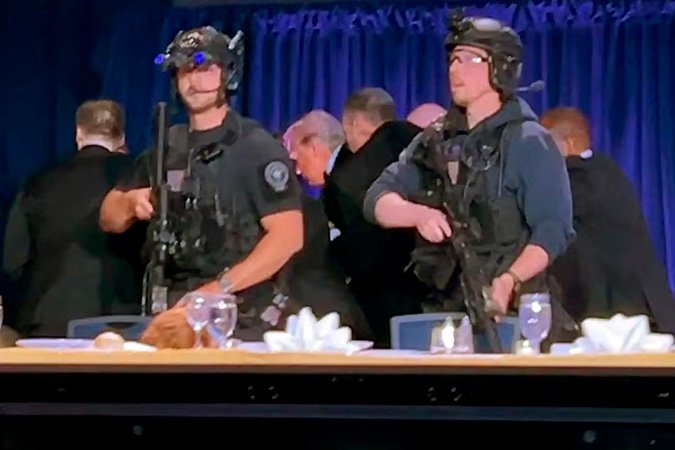 - A polícia local então informou que o suspeito dos disparos tentou invadir o salão, mas foi interceptado por agentes do Serviço Secreto. Depois, o próprio Trump divulgou, em sua rede social Truth Social, um vídeo em que um homem consegue furar um bloqueio de agentes de segurança;