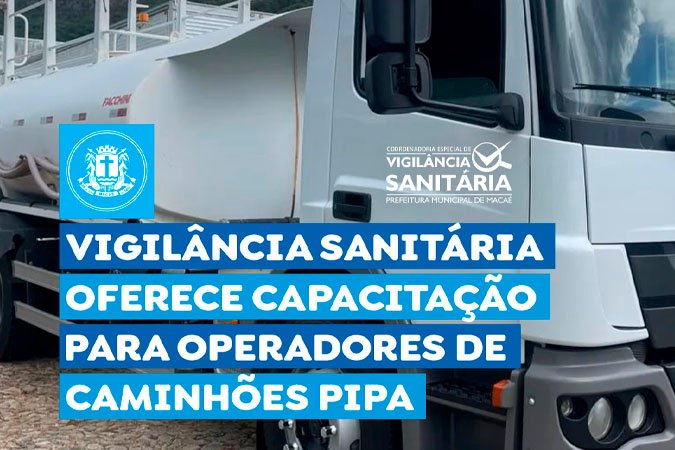 “A capacitação em ´Operador de Veículos Transportadores de Água Potável´ vai trazer orientações sobre a legislação sanitária vigente e suas obrigações, garantindo que a água potável destinada ao consumo humano esteja dentro dos padrões estabelecidos”, explica a Coordenadora Especial de Vigilância Sanitária, Camila Almeida.